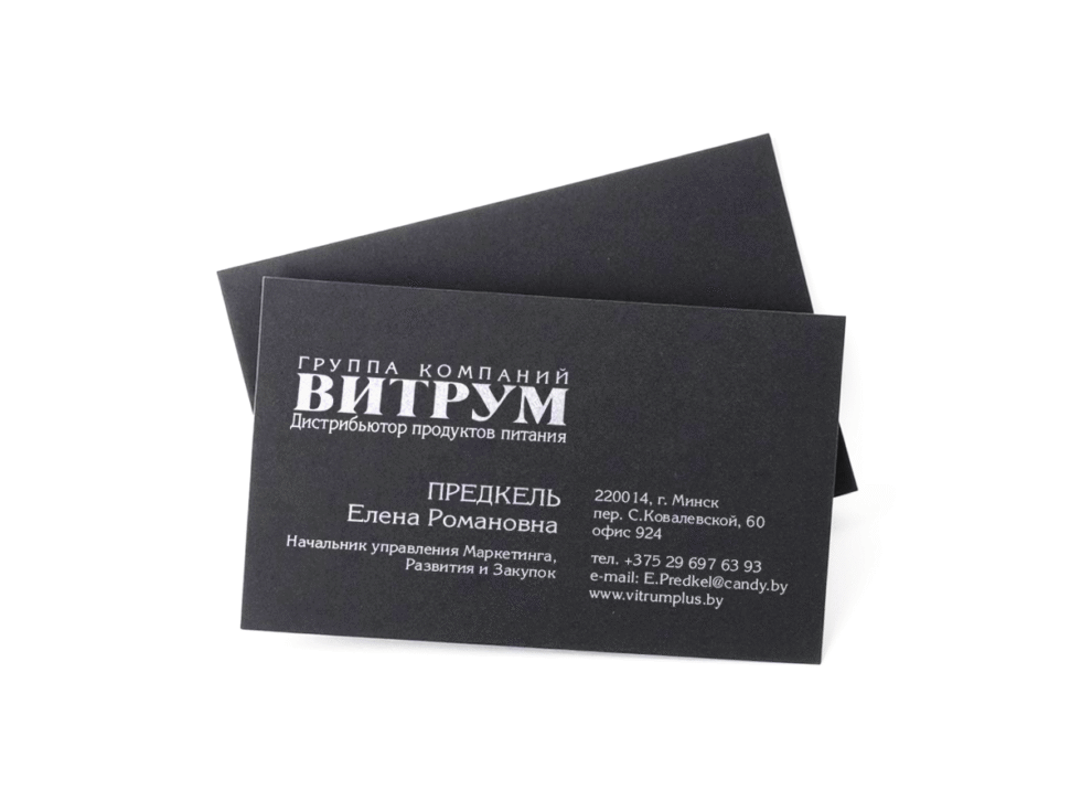 Мы предлагаем большой выбор дизайнерских бумаг: тиснёная, фактурная, перламутровая, металлизированная, прозрачная, крафт, а также варианты с оригинальной цветовой палитрой и необычными эффектами. Формат визиток может быть стандартным или выполнен по индивидуальному заказу — с фигурной вырубкой, закруглёнными углами, дополнительной отделкой (тиснение фольгой, выборочный лак, ламинация).